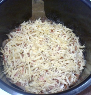 Последним слоем снова вылкадывается твердый сыр (оставшаяся часть).